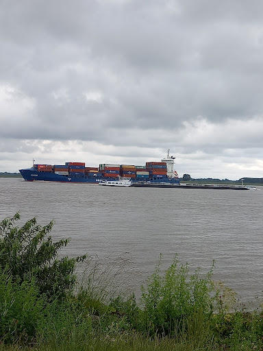 Einfach genial für Motorrad Ausflug. Imbisse für ein Kaffee ☕️, Cola oder eine Wurst mit Pommes ???? ist da. Blick auf die Elbe mit vorbeifahrenden Container Schiffen und Kreuzfahrtschiffen. Top