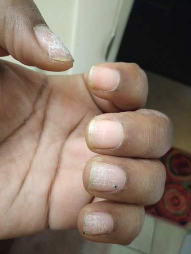 Wouldn’t recommend. I left with untrimmed cuticles, cuts on almost all of my fingers from the drill bit, polish and acrylic all over my fingers… absolutely horrible experience. The photos are from after I reshaped and did my best to get the polish off. Not to mention these nails are THICK I look like I have bubbles on my fingers.