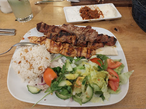 Leckere Grillgerichte Hähnchen, Lamm,Rind Fleisch. Super Qualität. Dazu die Joghurt Soße und Gegrilltes Gemüse. Nette und schnelle Bedienung.
