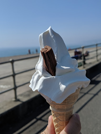 Softeis und Snacks gibt es an verschiedenen Stellen, schöner Ausblick auf den Seaford Head