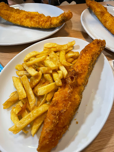 Wir waren hier, um typischen Fish&Chips zu essen. Dss Essen war sehr gut, das Restaurant sauber und man sieht, wie das Essen gemacht wird. Wenn man mit einer größeren Gruppe kommt, sollte man reservieren, ansonsten reicht es, wenn man einfach hingeht. Schlimmstenfalls muss mam ein paar Minuten auf einen Tisch warten.