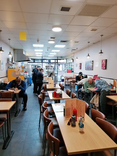 Ein kleines Lokal, bei dem man entweder mitnehmen, oder vor Ort essen kann. Die Portionen sind groß und die Preise sind in Ordnung. Für eine große Portion Fish and Chips haben wir 13,5 £ gezahlt.
